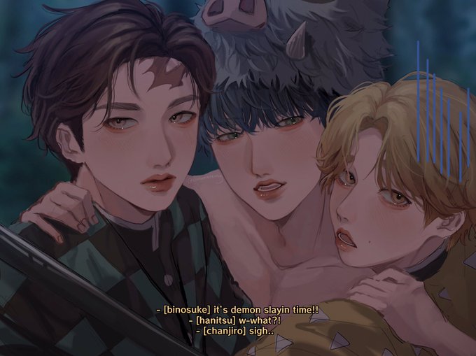 ⚔️👺”call me demon slayer…” 3RACHA x Demon Slayer!! i had a lot of fun w this request 😭 also chan’s like? perfect for tanjiro? because they’re both so kind n loyal n hardworking and care abt their family a lot 🥹💕 #StrayKids #BangChan #Changbin #Straykidsfanart