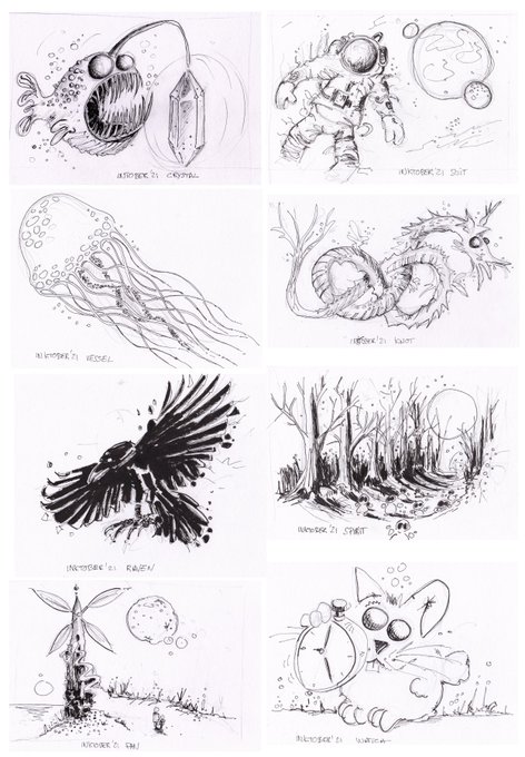 first eight days #inktober2021 @inktober Still motivated ! huit premiers jours #inktober #drawing