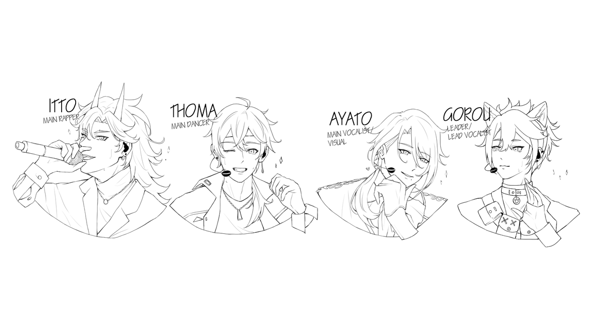 Inazuma Boy Group WIP, We're gonna continue the Genshin Idol AU! >< Idk what to call this group yet ;;-;; Colored version later. #GenshinImpact #genshinimpactfanart #Genshin #ArtistOnTwitter #illustration #FANART