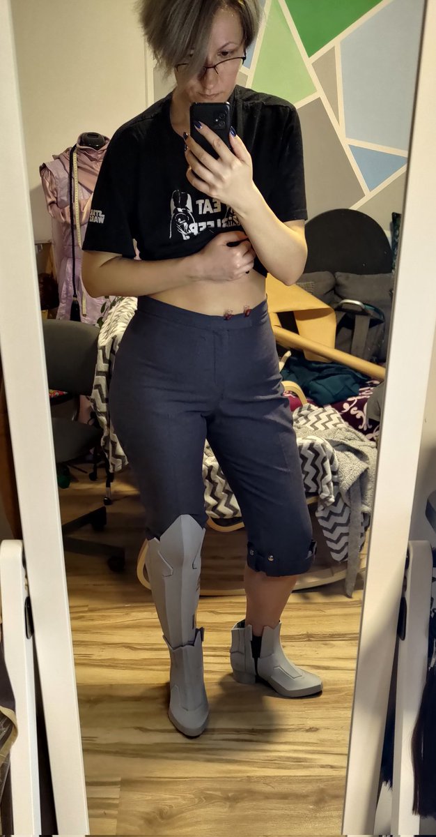 Okay, a few handstitches away from these pants being completely done. I don't normally post the butt angle but I'm really f-ing proud of these pants. This cosplay is getting built from the ground up it seems. #LittleDuck #Warframe #cosplay