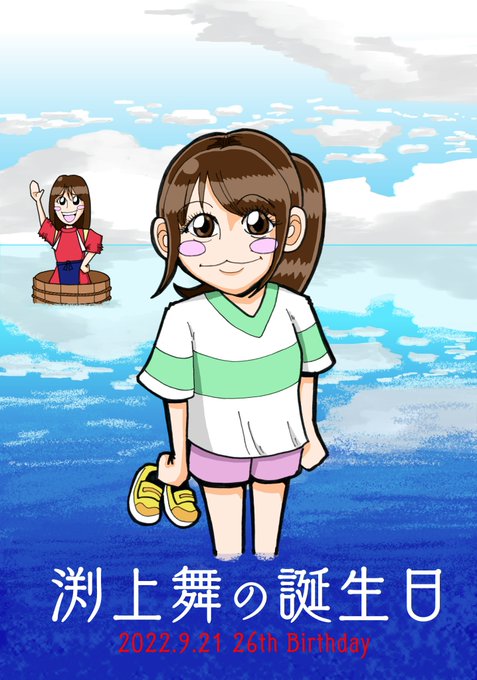 HKT48渕上舞さん26回目の(本当に!?)誕生日おめでとうございます。今年は『千と千尋の神隠し』の舞台を楽しんでいた姿の印象が残っているので今回はこんな感じの舞ちゃん(と坂口理子さん)を描いてみました。 #渕上舞生誕祭2022