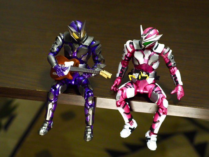 0 14 #夜のフィギュア撮影会 5/19 お題「小道具を使って」 パパの弾き語り (※ガチャガチャのギター) #仮面ライダー滅 #仮面ライダー迅 21/05/19 21:04