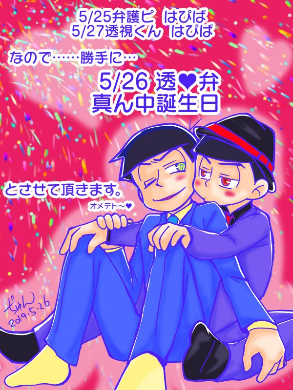 16 48 5/26真ん中バースデー♡ (自分だけが楽しい、透弁の日) あまりにも絵書いてなくて…絵柄も迷子……なので、フリー素材お借りした次第です😭 (去年のと一昨年のとのっけとこ……) 21/05/26 00:08