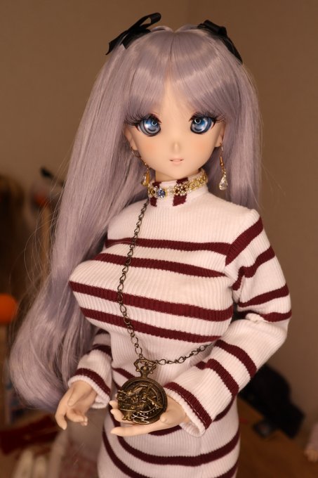 Scarlet Aliceさん(@scarlet_alice_)から、時計ウサギのネックレスが届きました。最近お留守番が続いたユリにプレゼント。 こういう時は嬉しそうな顔するから不思議だなぁ #うちのこかわいい #ScarletAlice #ドルフィードリーム #60並乳