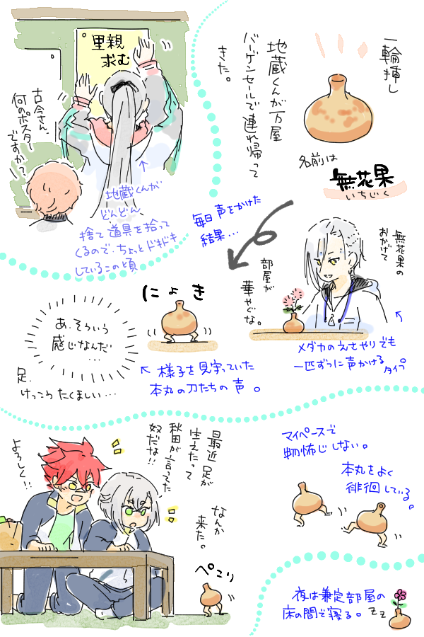 おかげさまで無骨さんがあの愉快なお部屋に加わったため、父は今日も元気です。 本丸にいる時の無骨さんは高確率で小さめの短刀たちに囲まれながら談話室の一角で文字の練習をしているので、歌仙さ... 続き→marshmallow-qa.com/messages/72334… #マシュマロを投げ合おう