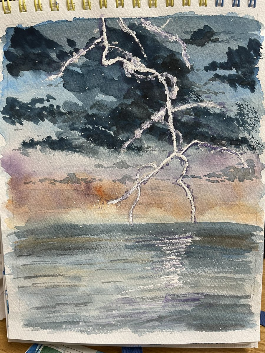 1 10 雷と海 #絵描きさんとつながりたい #海 #雷 #風景画 #絵 #絵の具 #水彩 22/07/15 20:36