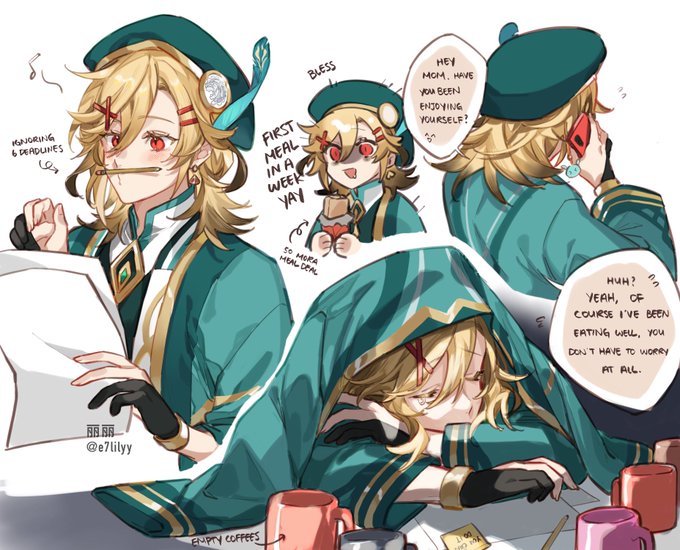 kaveh joins xingqiu and albedos doujin circle #GenshinImpact