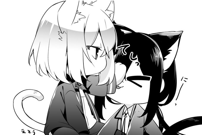 ずおにゃんこのしつこいグルーミングを拒否るばみにゃんこ描きました