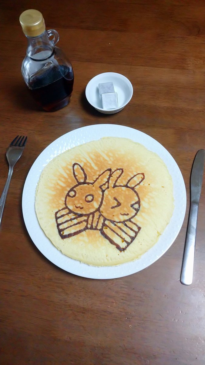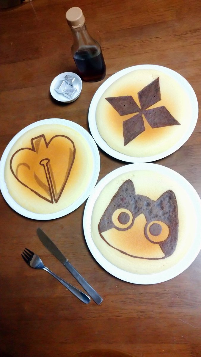 復帰、おめでとうございます ささやかですが、ホットケーキ焼いてみました🥞 ところで、ホットケーキとパンケーキ、ぶっちゃけ違いがほぼ無いような?思ってる今日この頃🤔 #逢魔きらら #あくまびじゅつかん