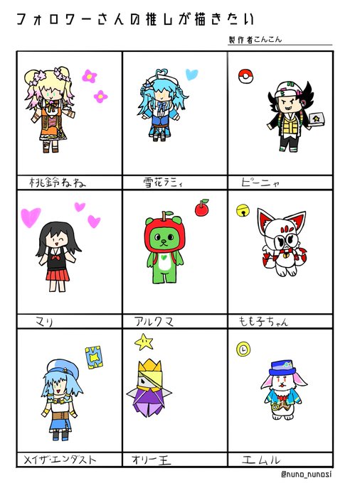 #リプをもらった番号の色を使って絵を描く お待たせいたしました! イースターパーティーでナノ、スプリングバスケットで スピカ、イースターエッグハントで森中花咲、 マカロンマカロンでミッフィーとダーンです!