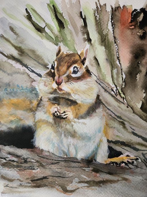 シマリス🐿️ #絵 #水彩画 #シマリス #動物画 #watercolorpainting #Chipmunk