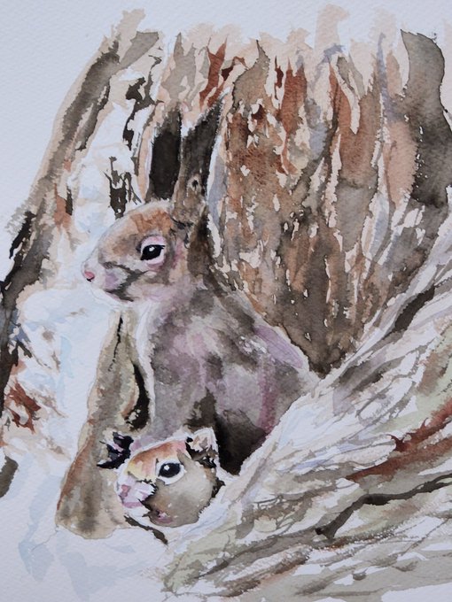 エゾリス🐿️ #絵 #水彩画 #エゾリス #watercolorpainting #squirrel