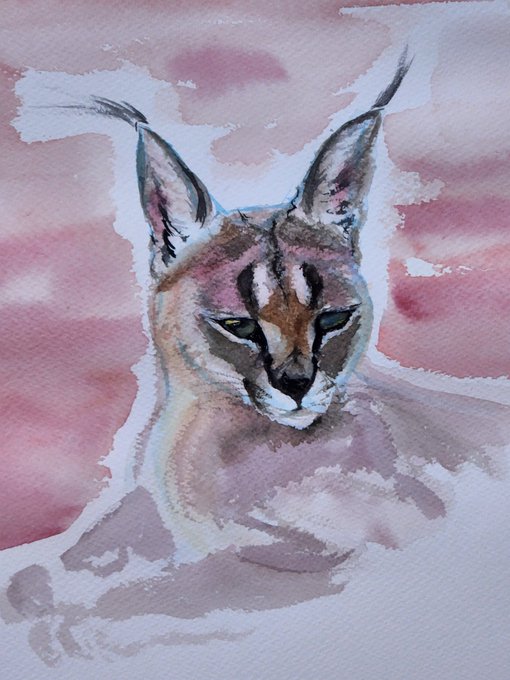 0 2 カラカル #絵 #水彩画 #動物画 #カラカル #watercolorpainting #caracal 22/08/07 20:32