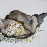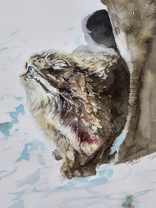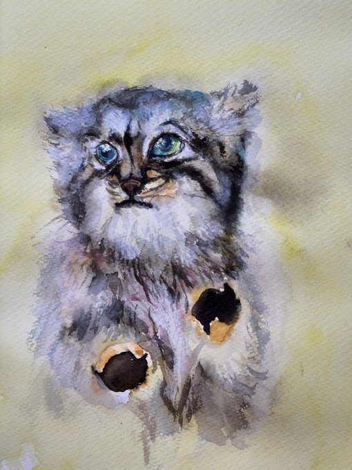 マヌルネコ🐱 昨日のスケッチを水彩画に😊 #絵 #水彩画 #動物画 #マヌルネコ #watercolorpainting #manulcat