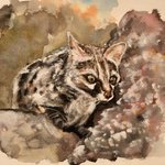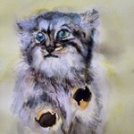 5 34 マヌルネコ🐱 昨日のスケッチを水彩画に😊 #絵 #水彩画 #動物画 #マヌルネコ #watercolorpainting #manulcat 22/08/18 16:07