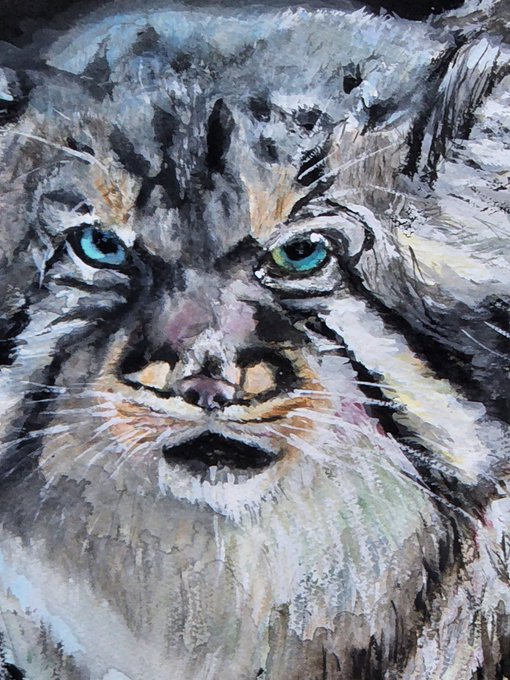1 12 マヌルネコ🐱 #絵 #水彩画 #動物画 #那須どうぶつ王国 #マヌルネコ #watercolorpainting #manulcat 22/09/06 20:04