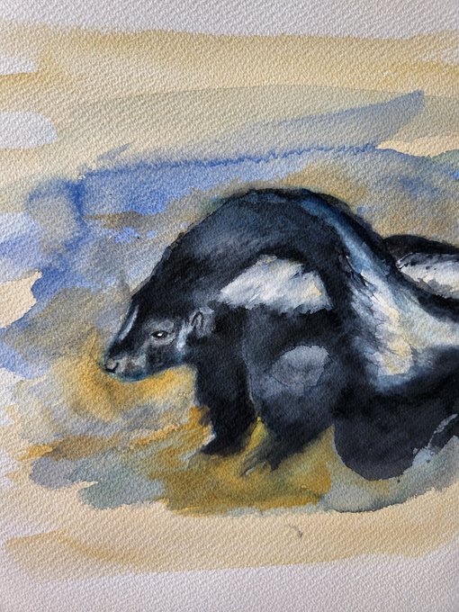 0 3 私のようなおじさんと一緒で… 臭くなければ…😥 #水彩画 #水彩画 #動物画 #スカンク #watercolorpainting #skunk 22/08/27 10:46