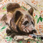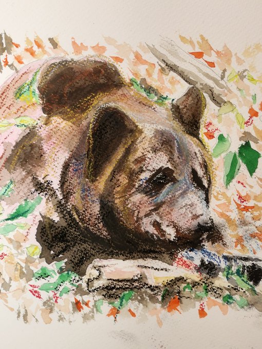0 1 もりのくまさん🐻 #絵 #パステル #水彩画 #ヒグマ 22/08/29 16:06