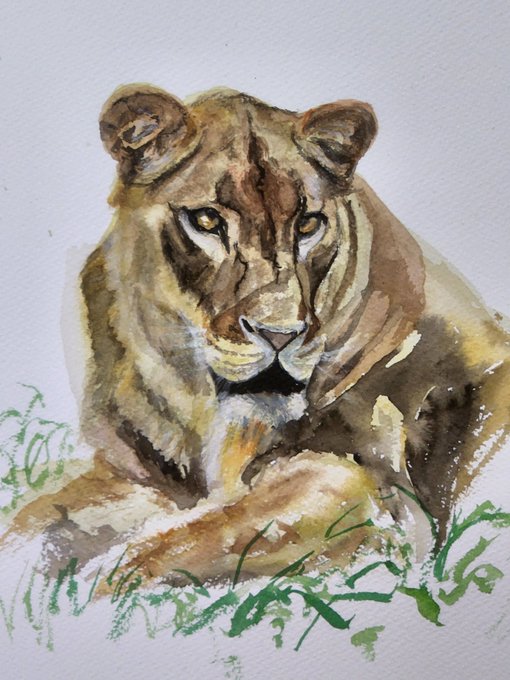 0 4 Lion 🦁 #watercolorpainting #Lion #絵 #水彩画 #動物画 #八木山動物公園 #ライオン 22/09/26 08:31