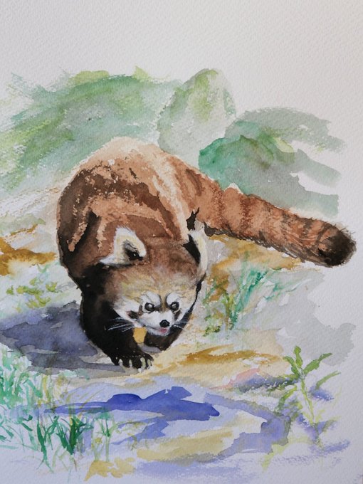 レッサーパンダ #絵 #水彩画 #八木山動物公園 #レッサーパンダ #watercolorpainting #redpanda