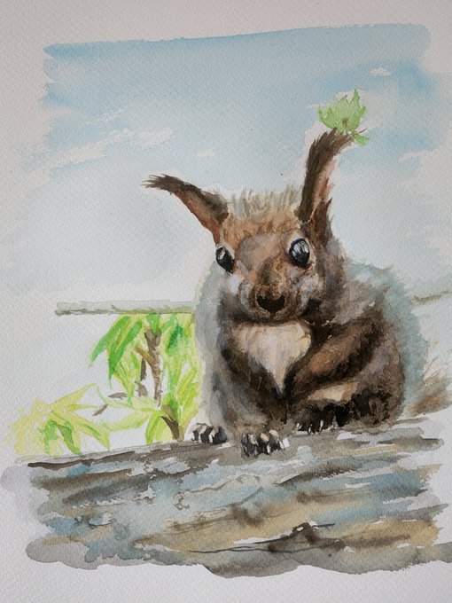 0 2 エゾリス🐿️ #絵 #水彩画 #エゾリス #watercolorpainting #squirrel 22/07/29 18:19