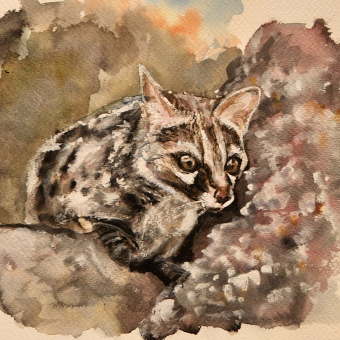 たぶん、 ジャコウネコ… #絵 #水彩画 #動物画 #ジャコウネコ