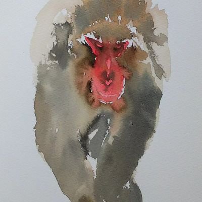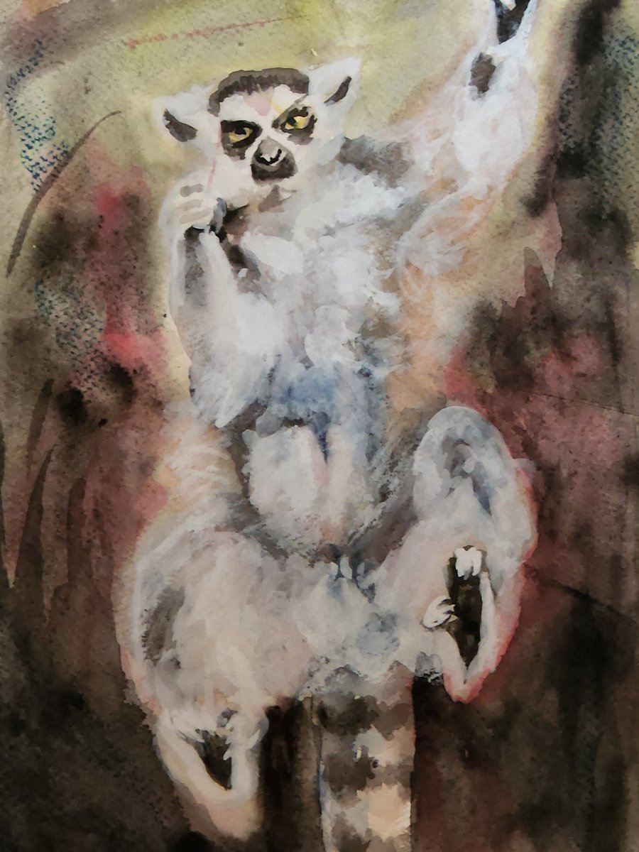 0 1 ワオキツネザル #絵 #水彩画 #八木山動物公園 #ワオキツネザル #watercolorpainting 23/06/01 12:27