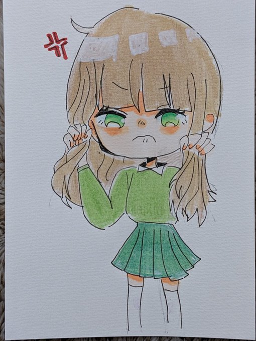 色鉛筆とコピックで塗りました。怒ってる女のコです。 表情を意識しました。 #イラスト #イラスト練習中 #アナログ絵
