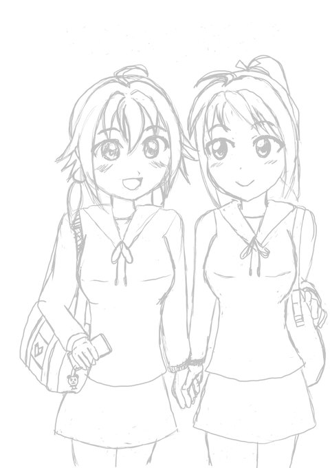JK制服姿の双子姉 赤美 とちゅうほうこく 板前は高校二年生みたいに #漫画家志望 #漫画イラスト #漫画家志望さんと繋がりたい #女子高生イラスト