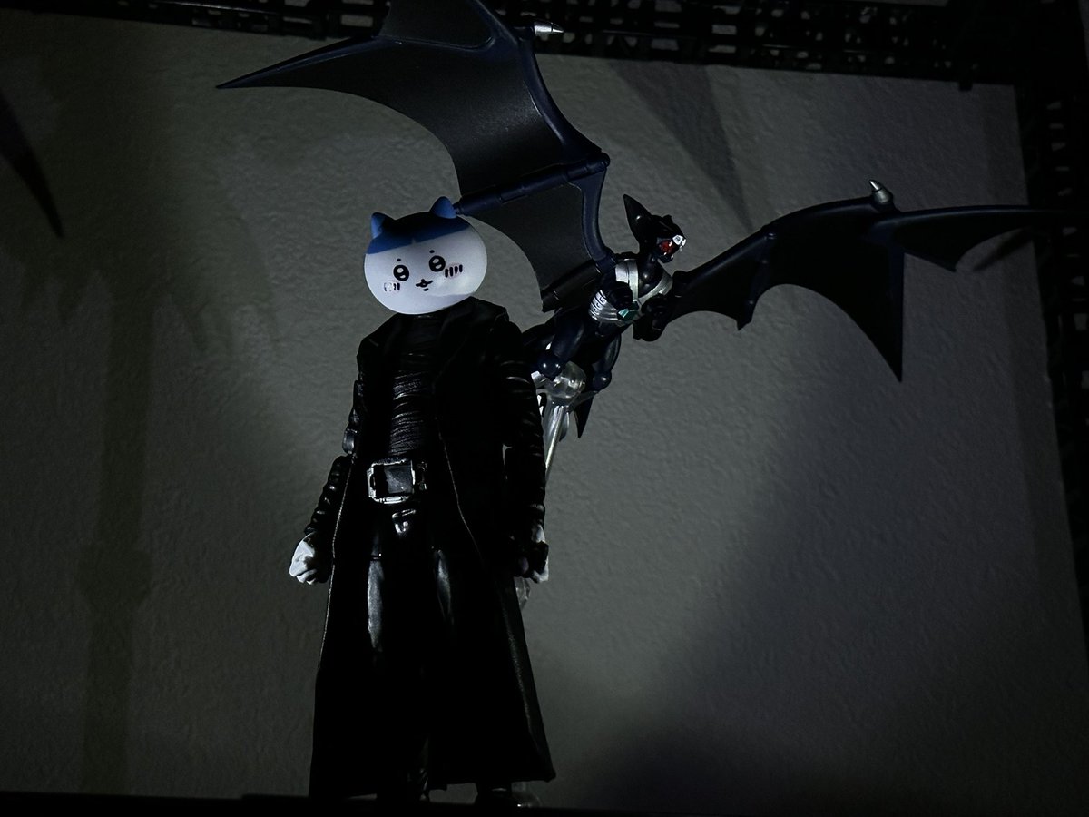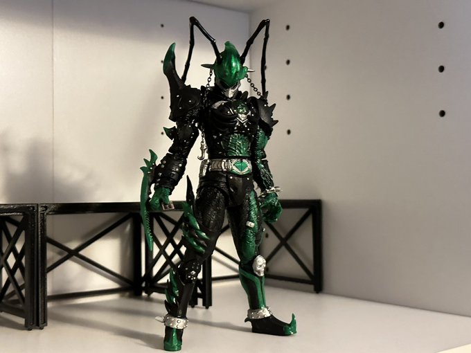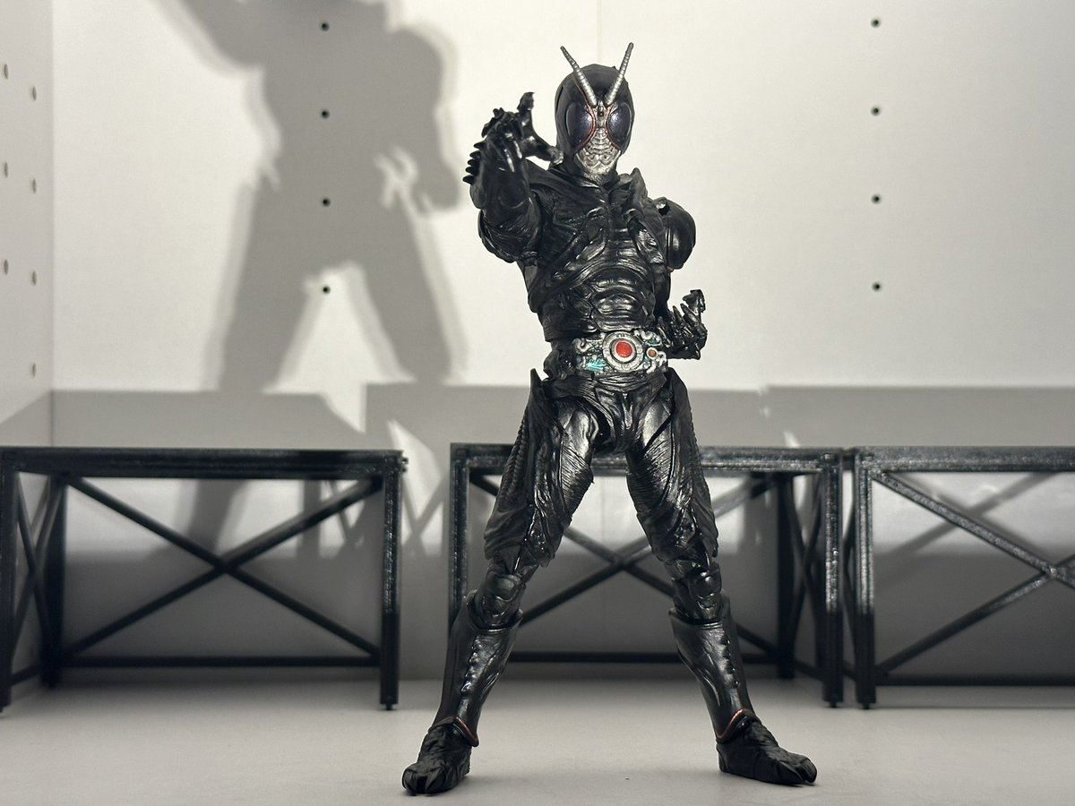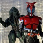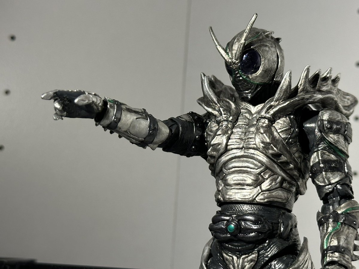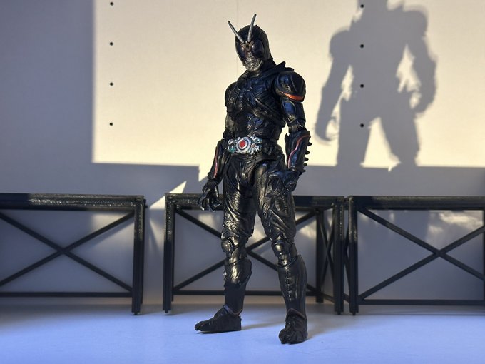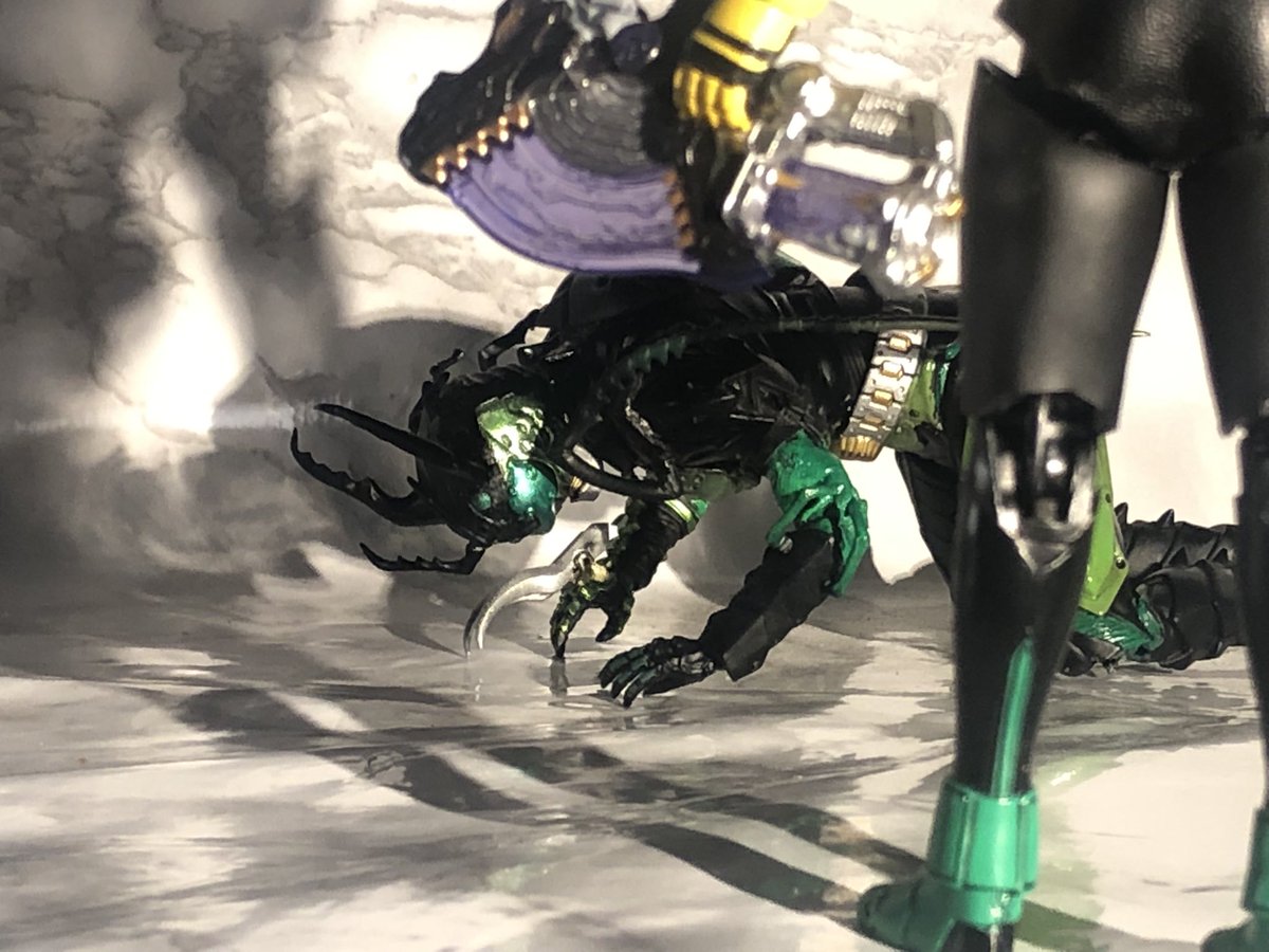 仮面ライダーBLACK SUN ソフビとマクファーレントイズのバットマンで作りました〜。いつもより少し大きめです。生々しい感じが好きですね〜。🦗 #ニチアサフィギュア改造部 #造って遊ぼ