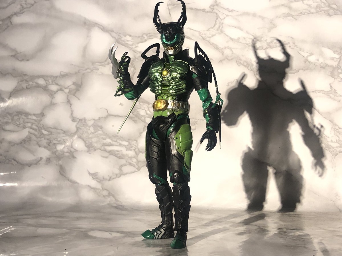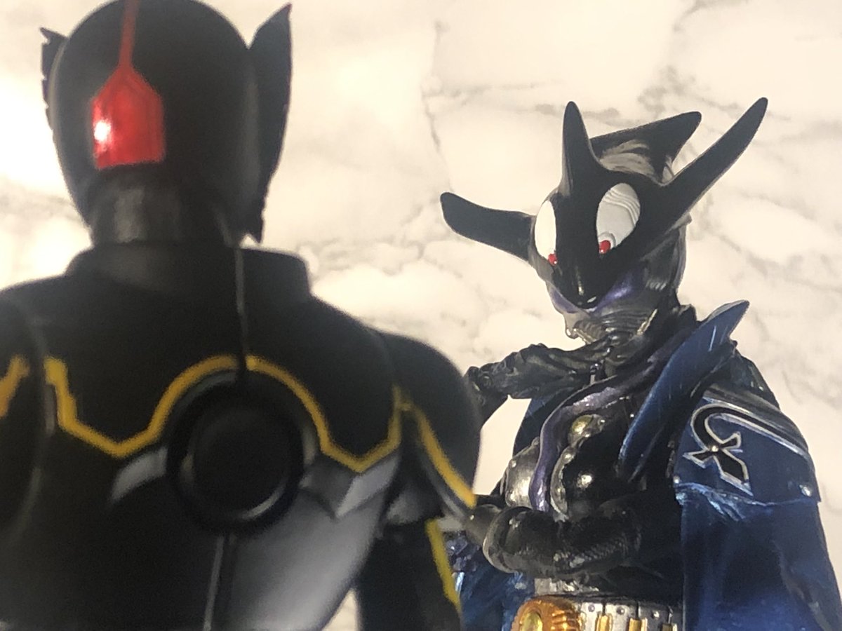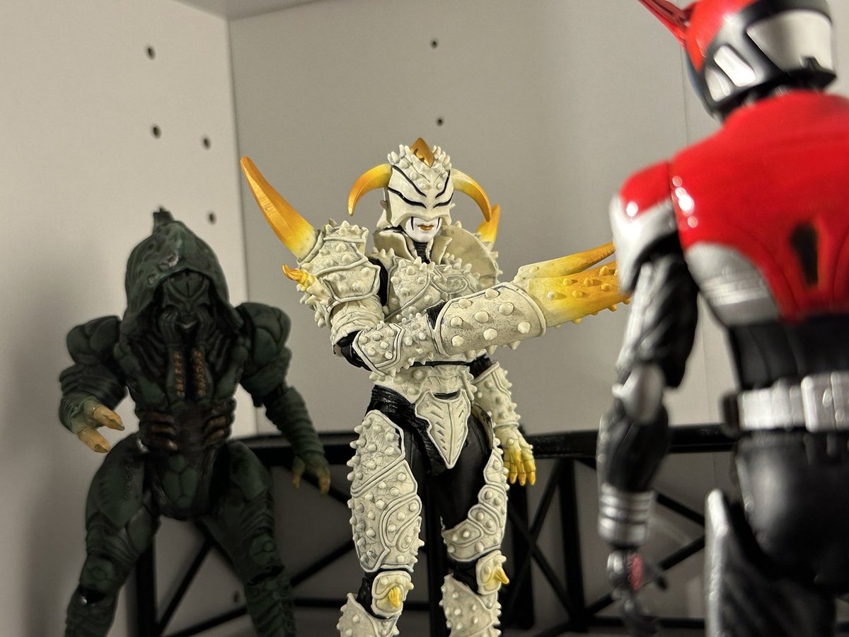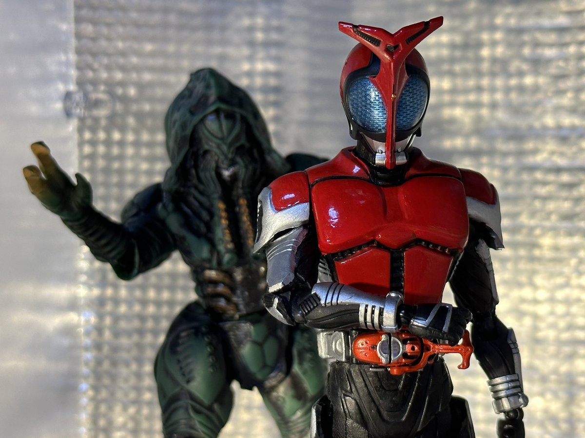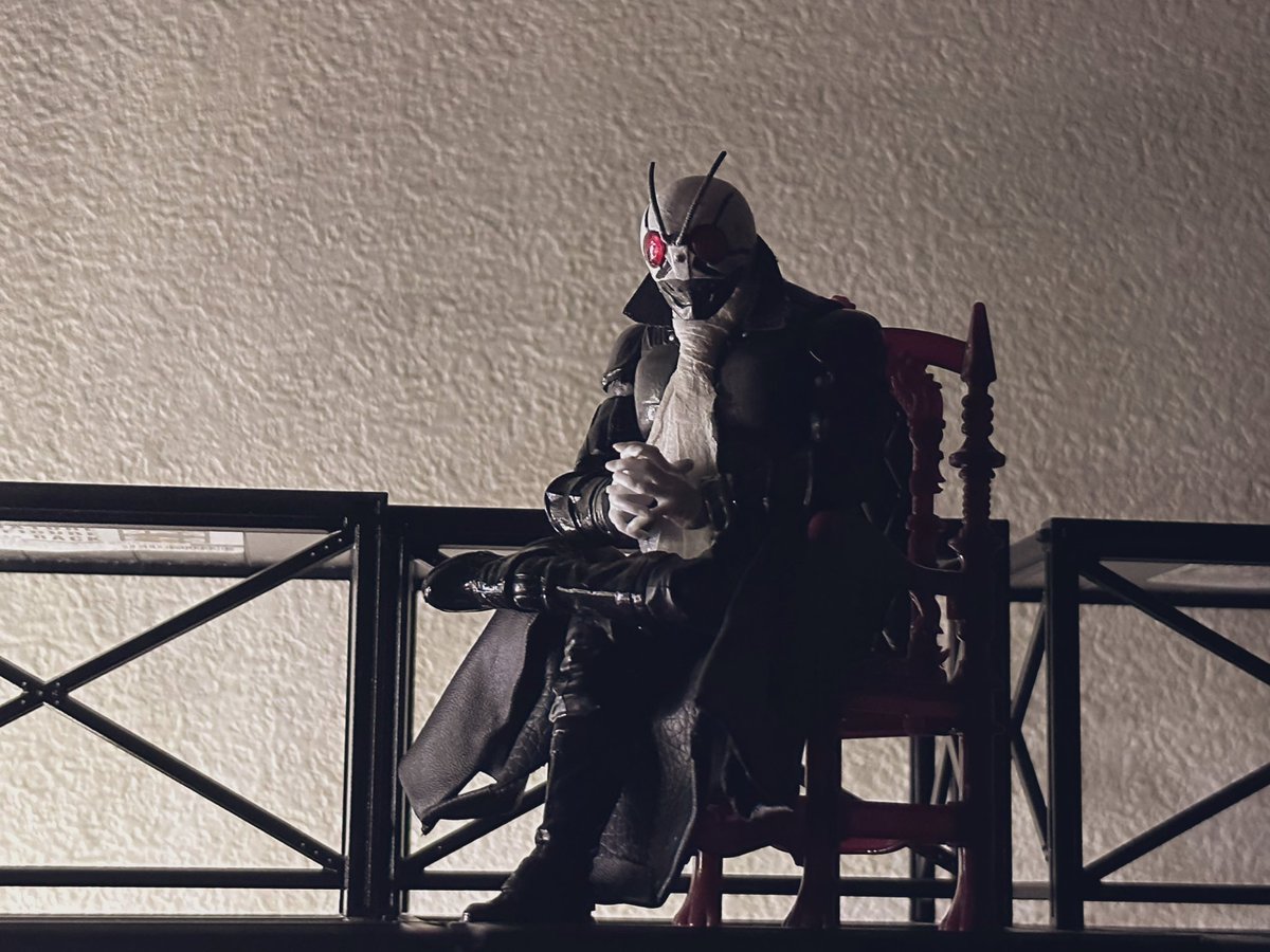 仮面ライダーBLACK SUN ソフビとマクファーレントイズのバットマンで作りました〜。いつもより少し大きめです。生々しい感じが好きですね〜。🦗 #ニチアサフィギュア改造部 #造って遊ぼ