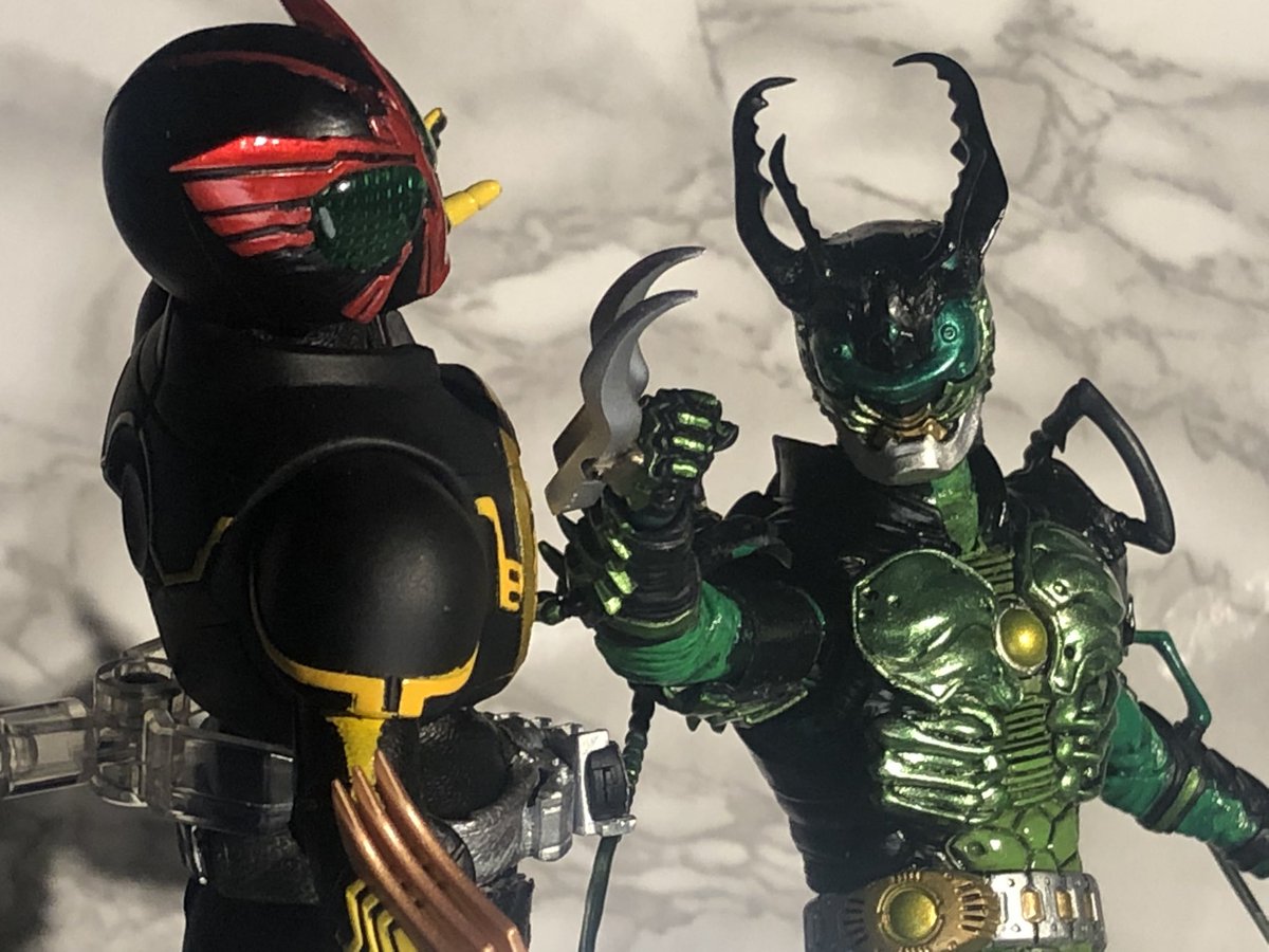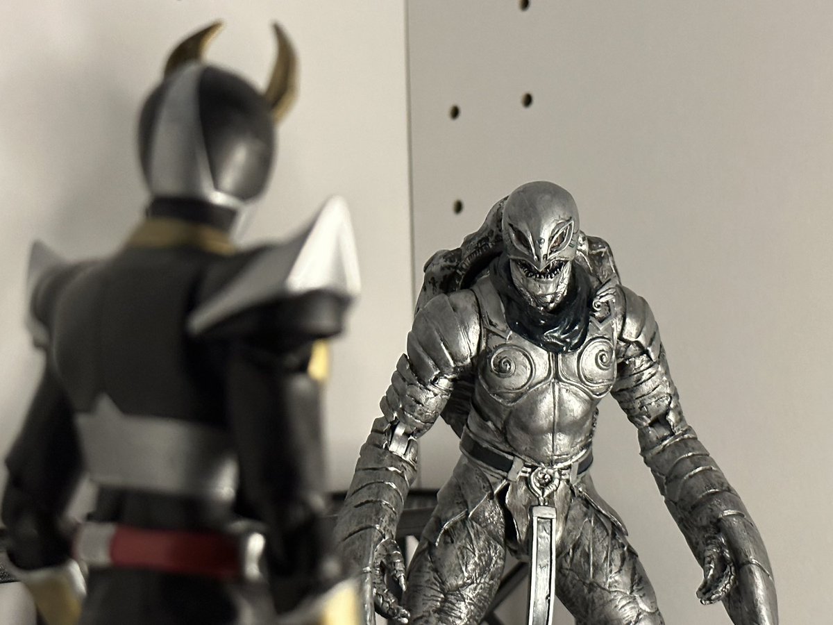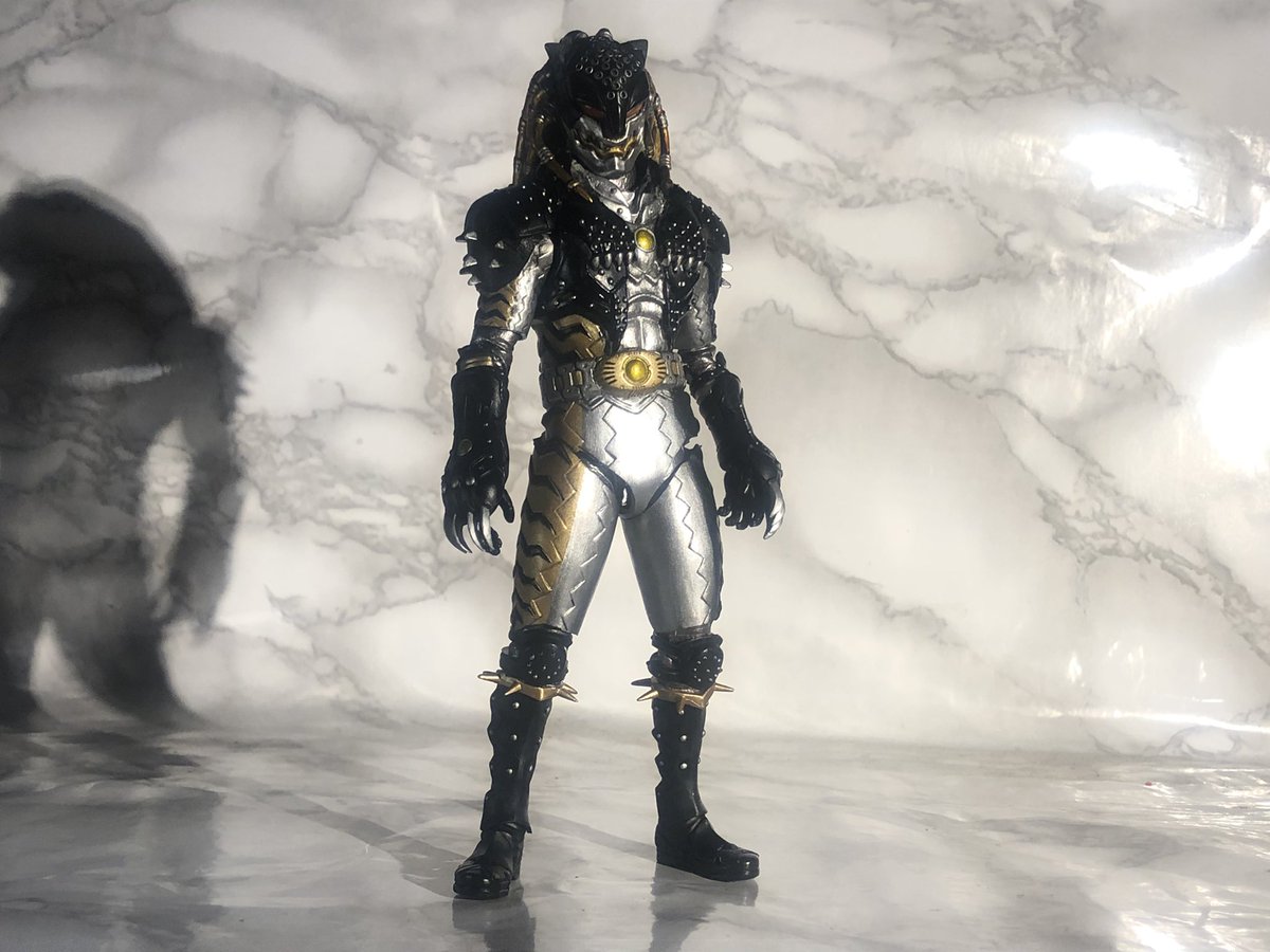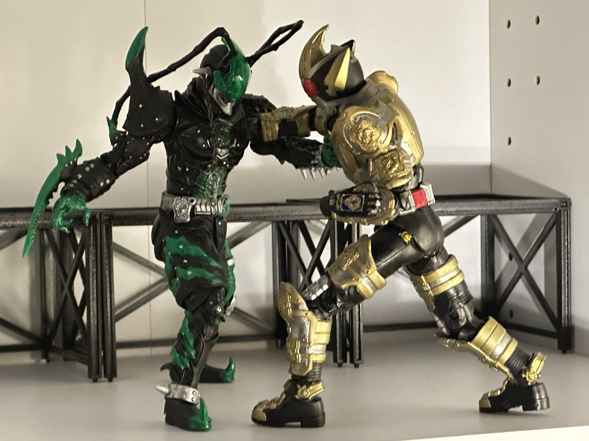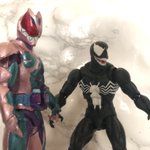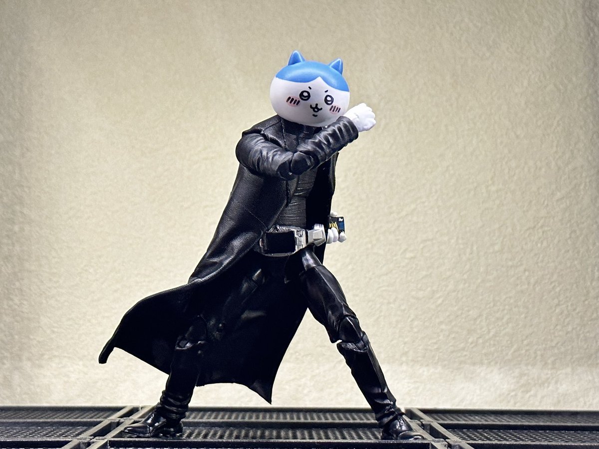 仮面ライダーBLACK SUN ソフビとマクファーレントイズのバットマンで作りました〜。いつもより少し大きめです。生々しい感じが好きですね〜。🦗 #ニチアサフィギュア改造部 #造って遊ぼ