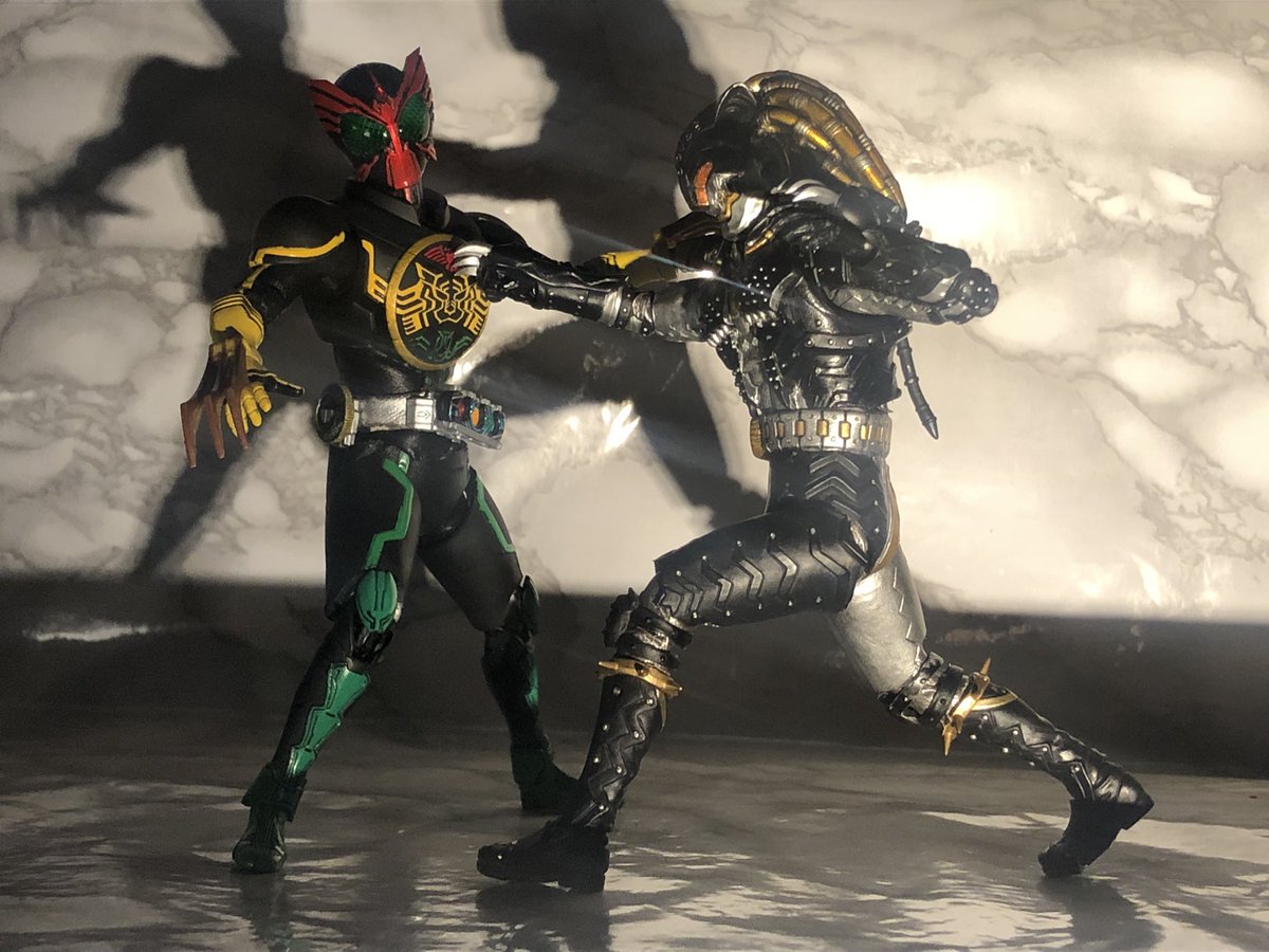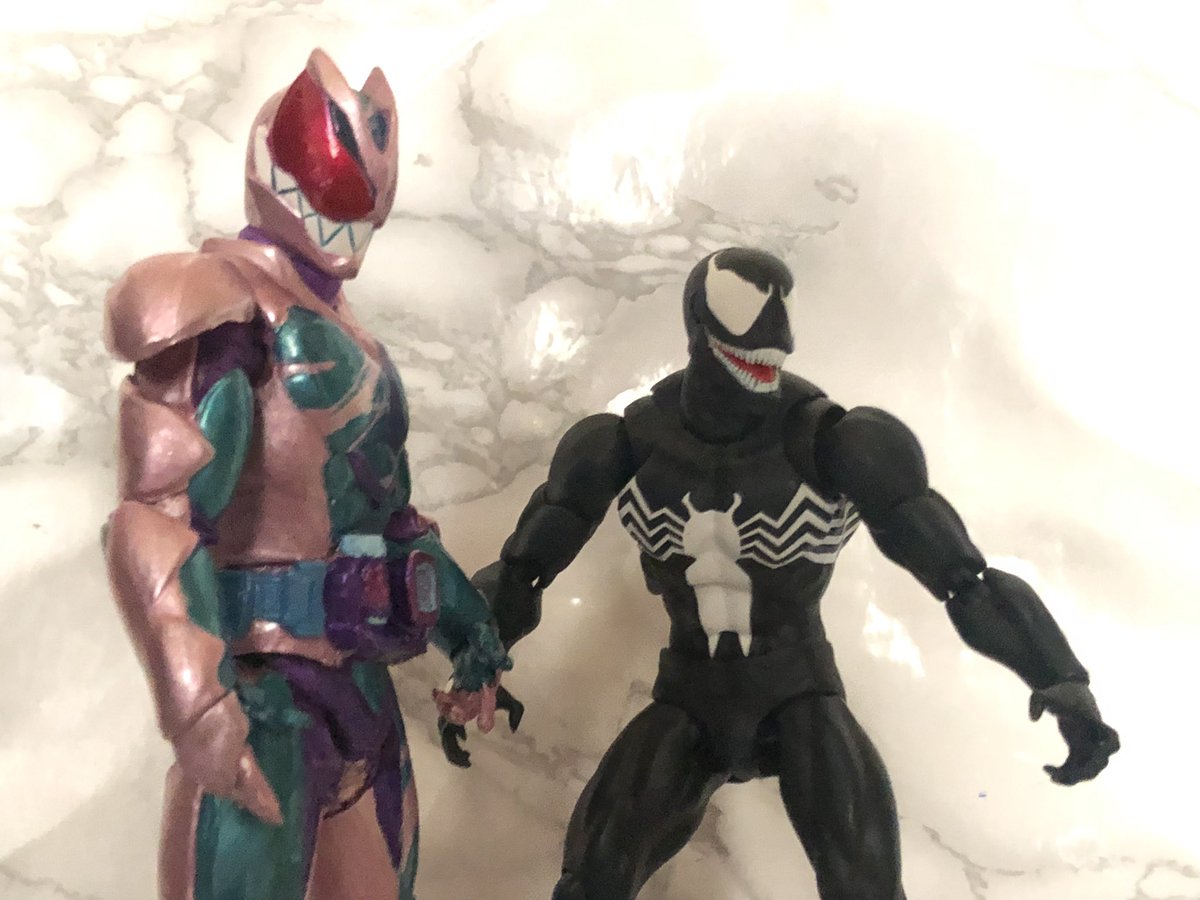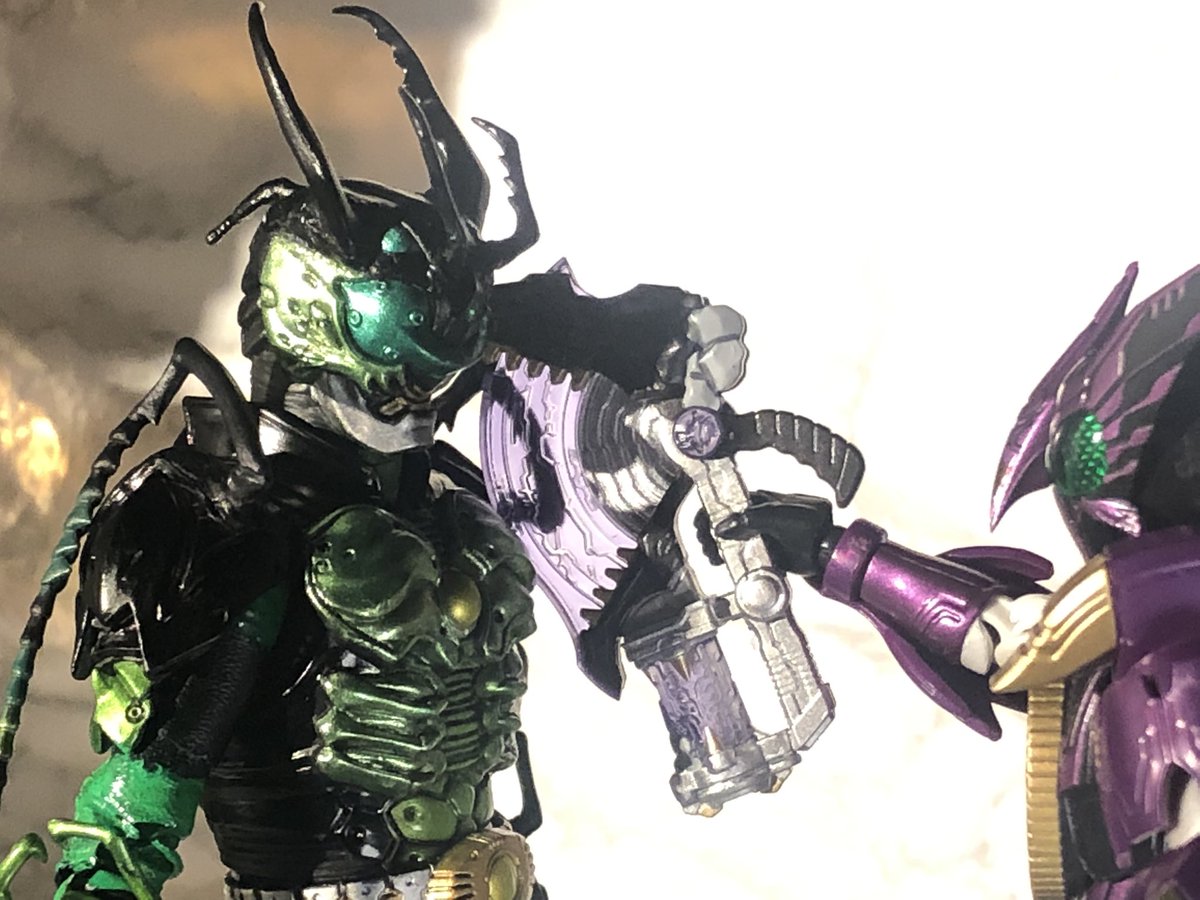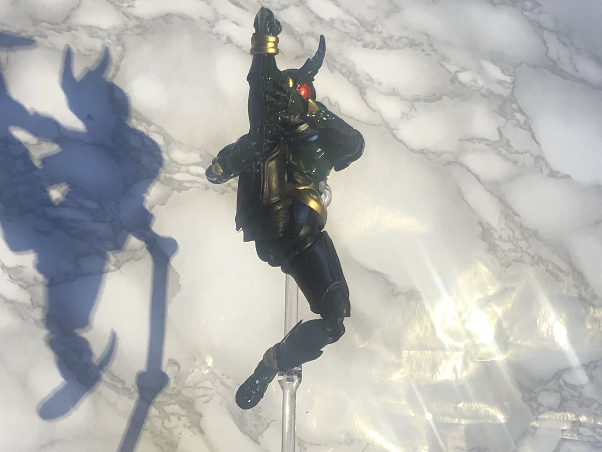仮面ライダーBLACK SUN ソフビとマクファーレントイズのバットマンで作りました〜。いつもより少し大きめです。生々しい感じが好きですね〜。🦗 #ニチアサフィギュア改造部 #造って遊ぼ
