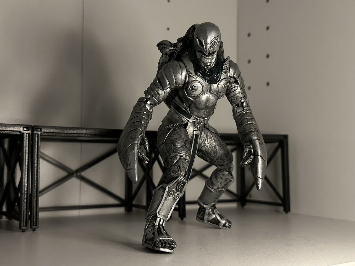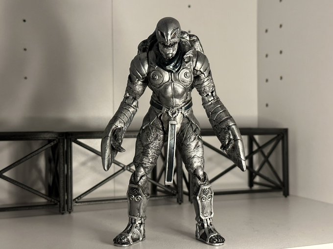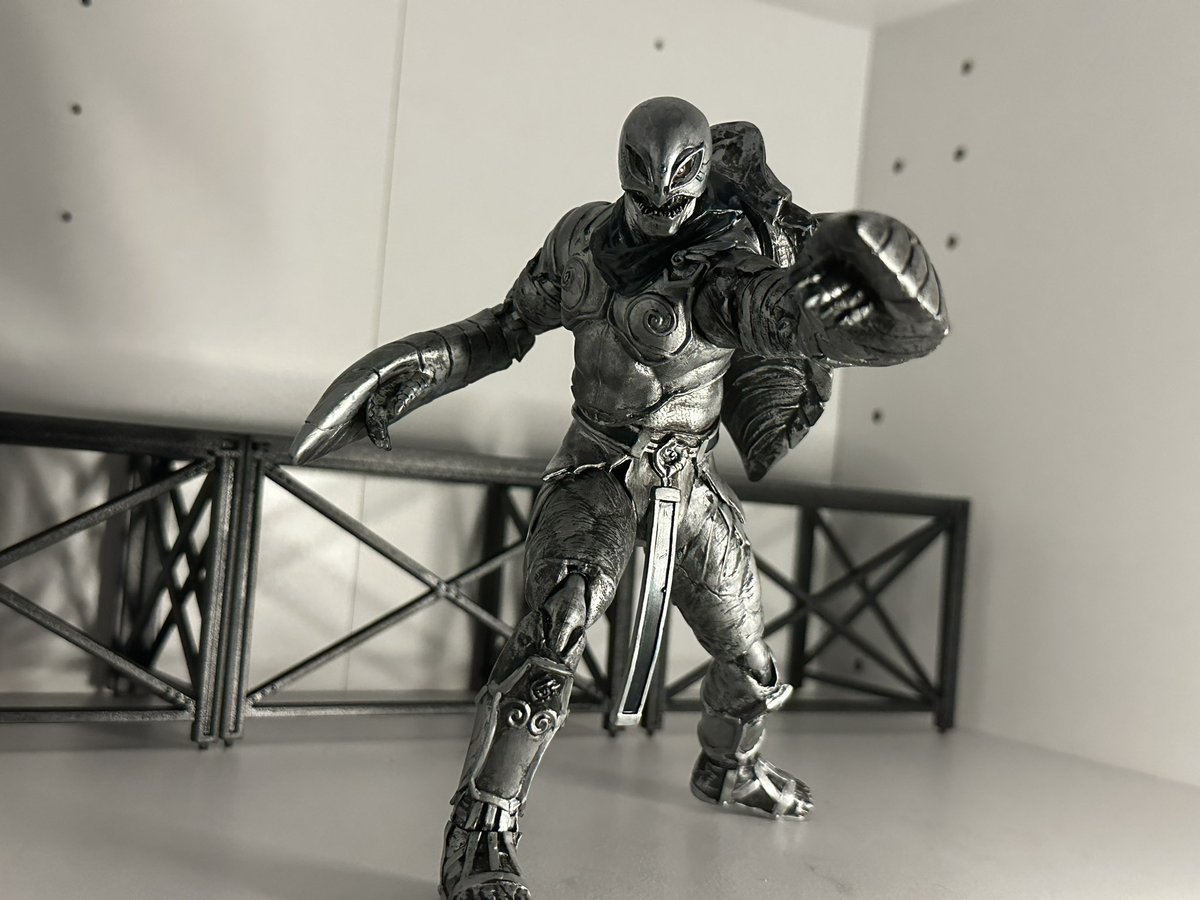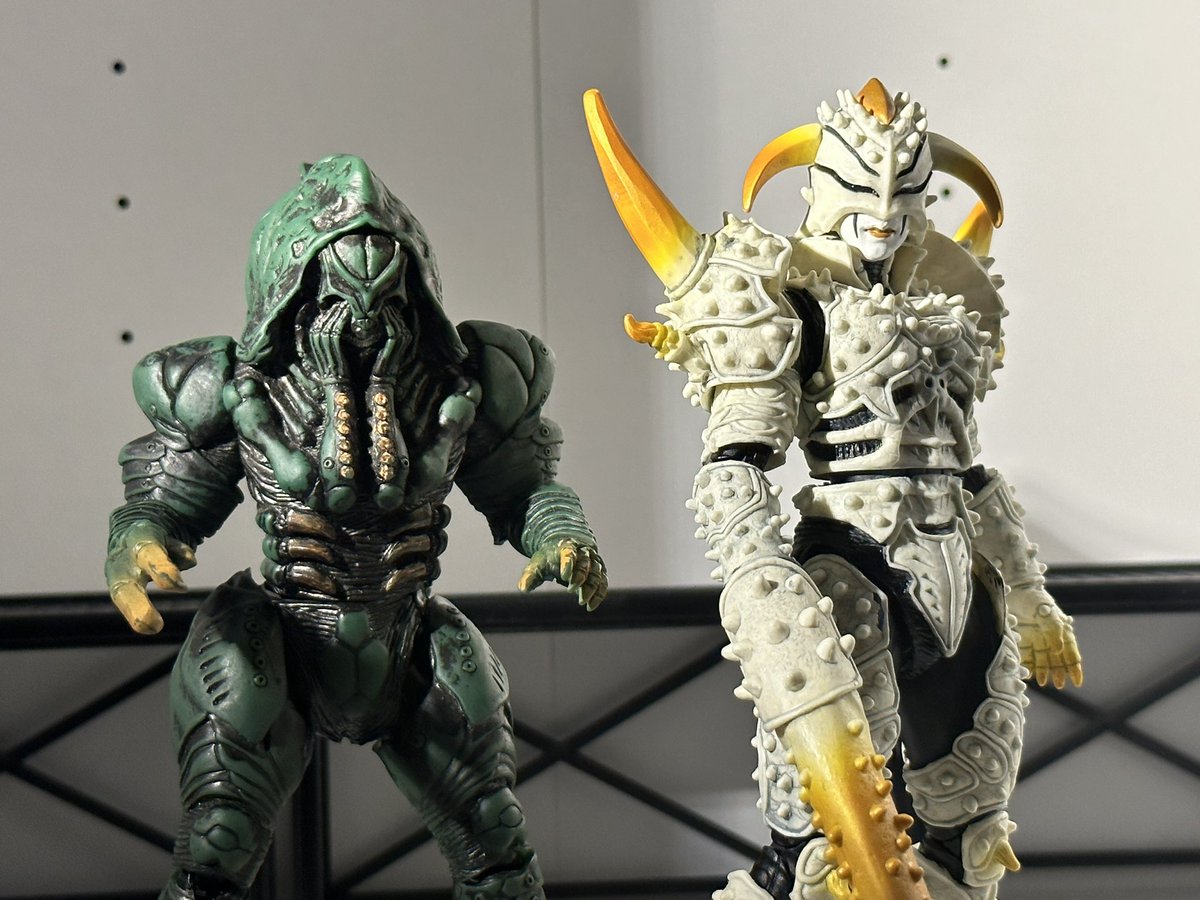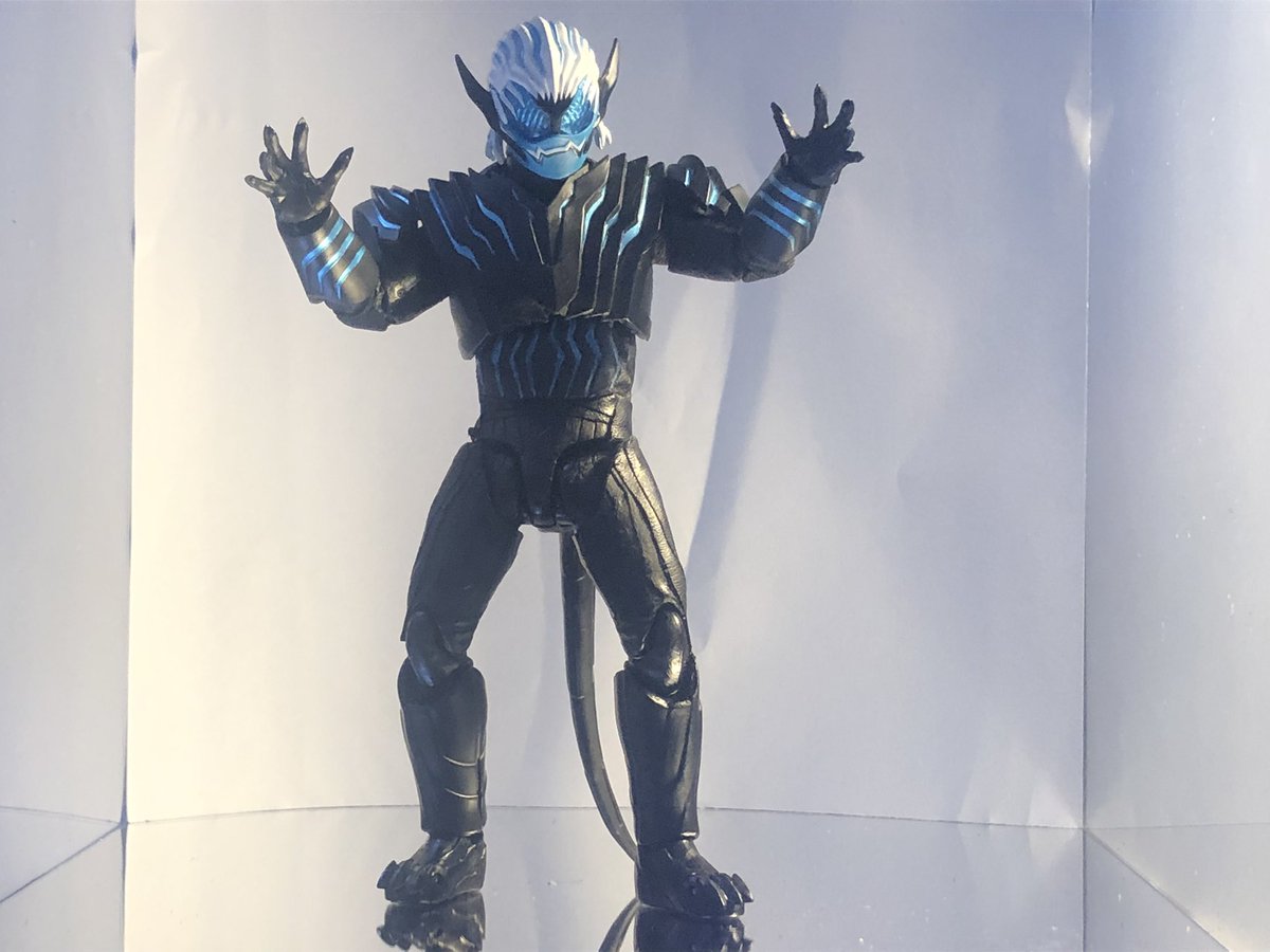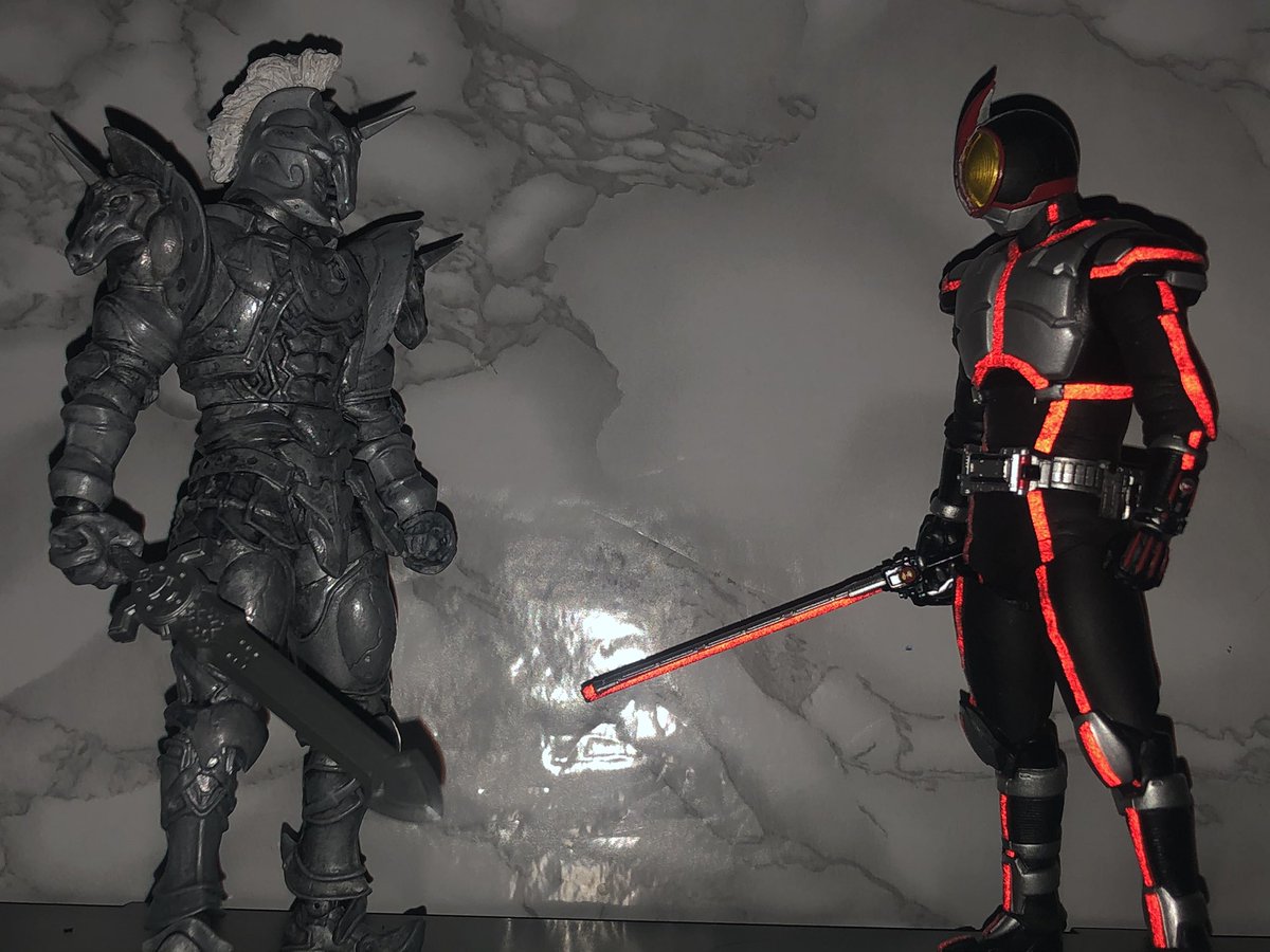 仮面ライダーBLACK SUN ソフビとマクファーレントイズのバットマンで作りました〜。いつもより少し大きめです。生々しい感じが好きですね〜。🦗 #ニチアサフィギュア改造部 #造って遊ぼ