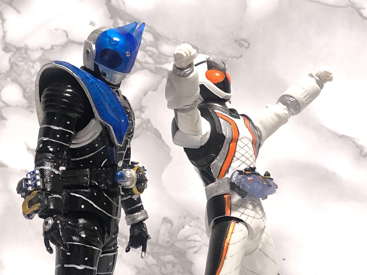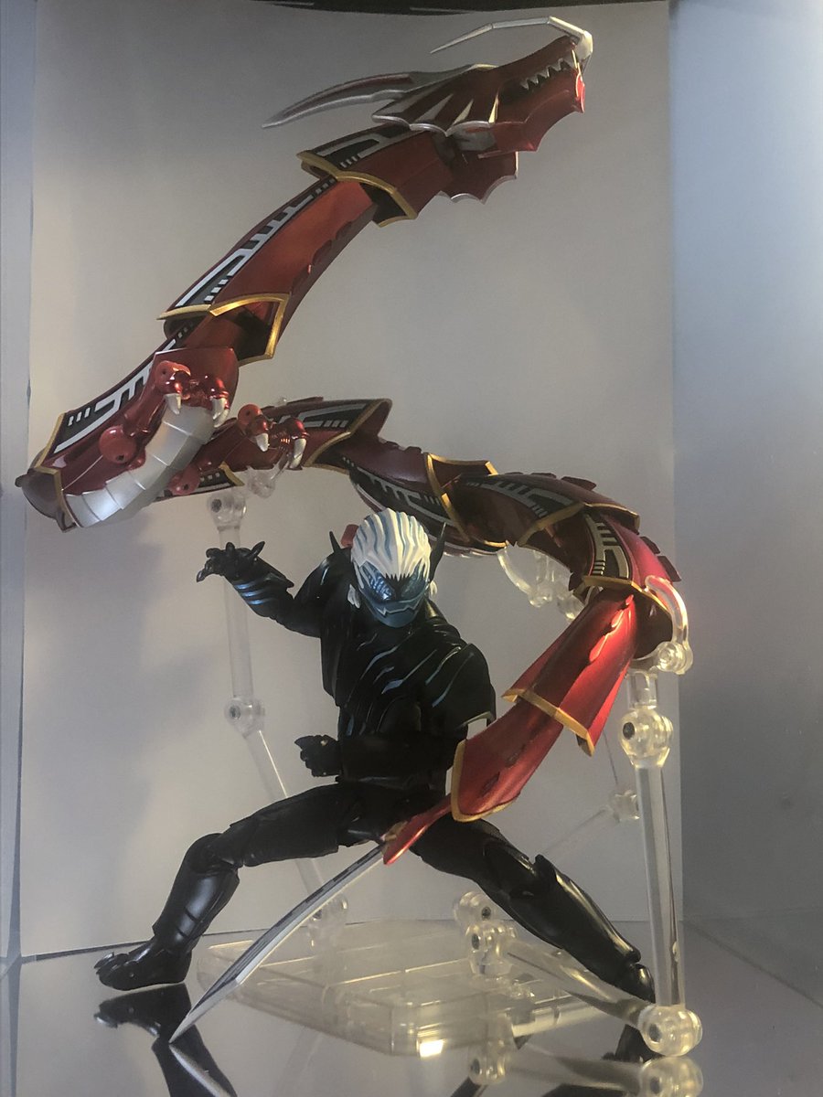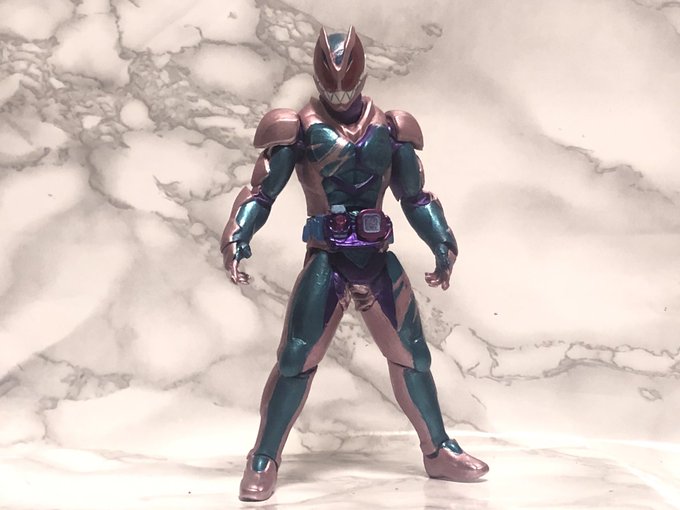 仮面ライダーリバイ リバイのソフビとブレイズのアーツでリバイを作りました。青竹色の部分はもう少し水色気味にしたほうが良かったかもしれないですね。 仮面ライダーリバイスの放送が楽しみですね〜。🦹♂️ #ニチアサフィギュア改造部 #造って遊ぼ