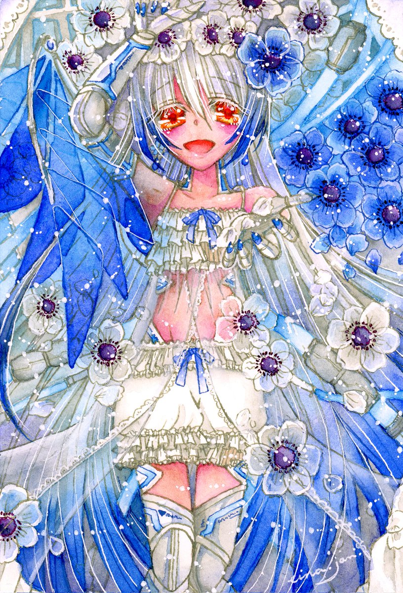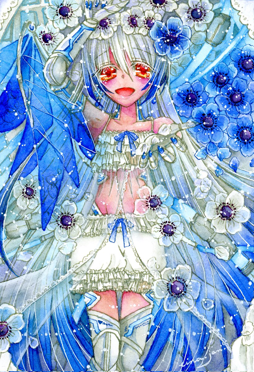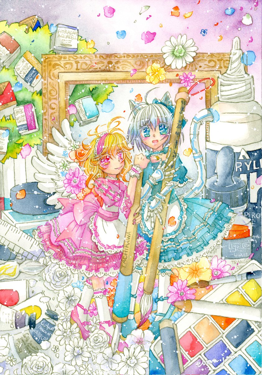 #三連休はフォロワーさんが増える #絵柄が好みっていう人にフォローされたい #夏の創作クラスタフォロー祭り わたしもー! 水彩とアクリルで機械っことか女の子とかお花とかきらきらをかいています。涼しげ作品詰め! フォローされたいなー!基本的にフォローおかえししますのでぜひー!!