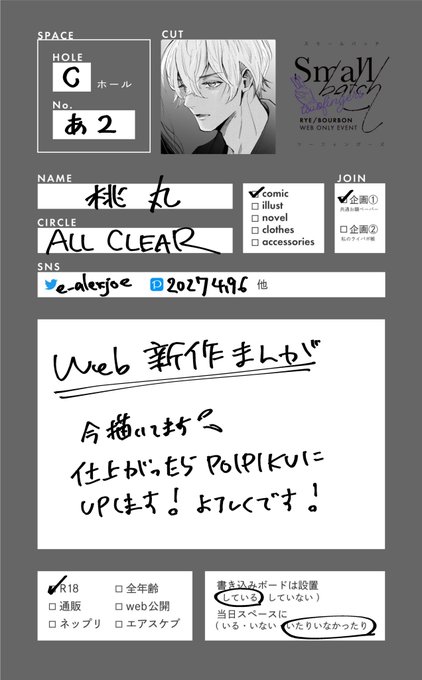 1/8 インテ お品書き 6号館A【こ49b】 LINGON JAM ※nrzさんご本人ごと委託があります ※新刊ノベルティ①のポーチは会計1限 ※新刊ノベルティ②のポストカードは全新刊に1部に1枚ずつ ※無配ポストカードあるのでお立ち寄りください よろしくお願いします🤲✨