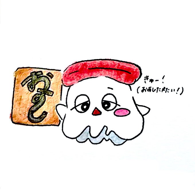 おすしたべたーい( ߹ ^ ߹ ) #きゅーちゃんはおばけ #イラスト #イラスト好きさんとつながりたい #オリジナルキャラクター #ゆるいイラスト #可愛いと思ったらRT #絵描きさんと繋がりたい #お絵描き #手描き #アナログ #illustraion