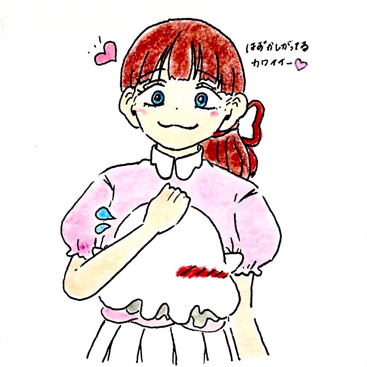 りんごむいてもらってるきゅーちゃん #きゅーちゃんはおばけ #イラスト #イラスト好きな人と繋がりたい #オリジナルキャラクター #ゆるい絵 #絵描きさんと繫がりたい #お絵描き #手描き #アナログ絵 #可愛いと思ったらRT #illustration