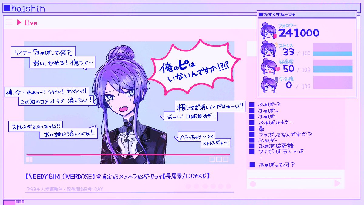 メンヘラ配信者を育成するゲームなのに、ふぁぼを知らないリスナーに傷付いて、自らメンヘラ化し、リスナーの中にいるかもしれないピに助けを求めるシーン 笑った #長尾百景