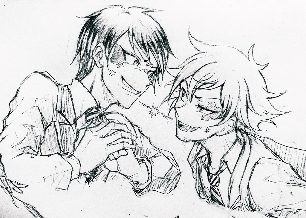 息抜き落書き。エーデュースちゃんとおまけジャック+グリム。一年組めんこいね…😢 #ツイステファンアート