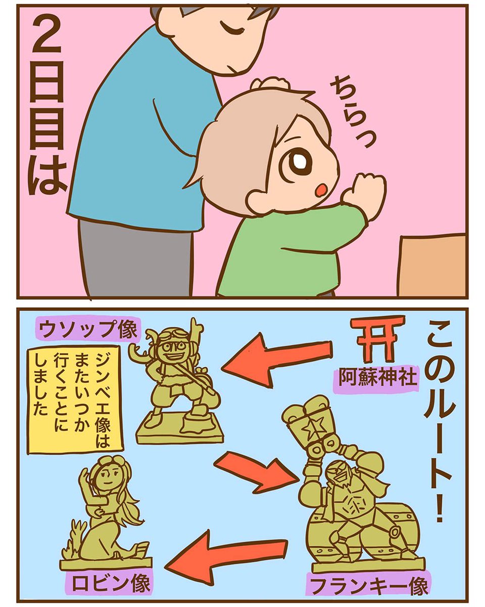 ワンピース像巡り(4) 熊本県に遊びに行ったレポ漫画のつづきです😊 ↓つづきます #漫画が読めるハッシュタグ #エッセイ漫画