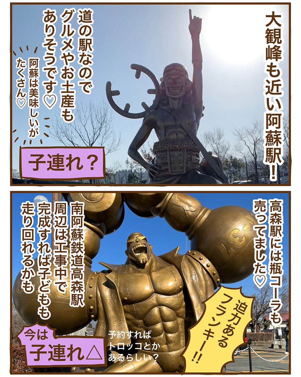 2 25 ワンピース像巡り(5) 熊本県に遊びに行ったレポ漫画のつづきです😊 ↓つづきます #漫画が読めるハッシュタグ #エッセイ漫画 23/03/08 09:28