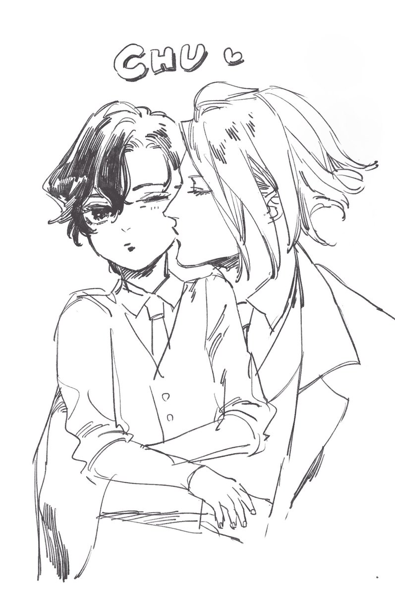 何か描いて寝たいと思とったが寝なきゃだし丁度チッスしてたからこれで
