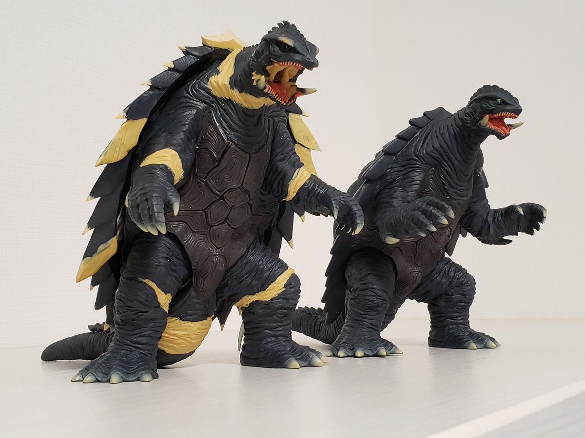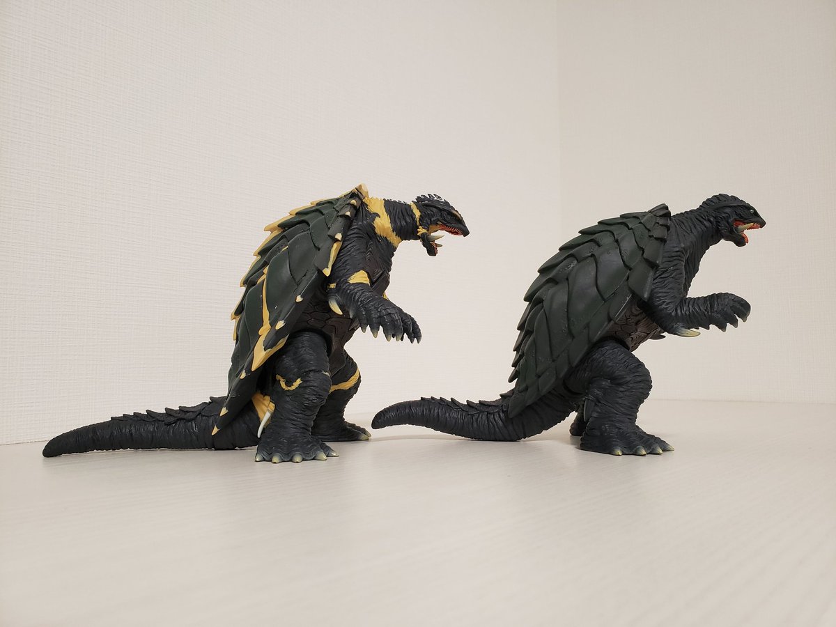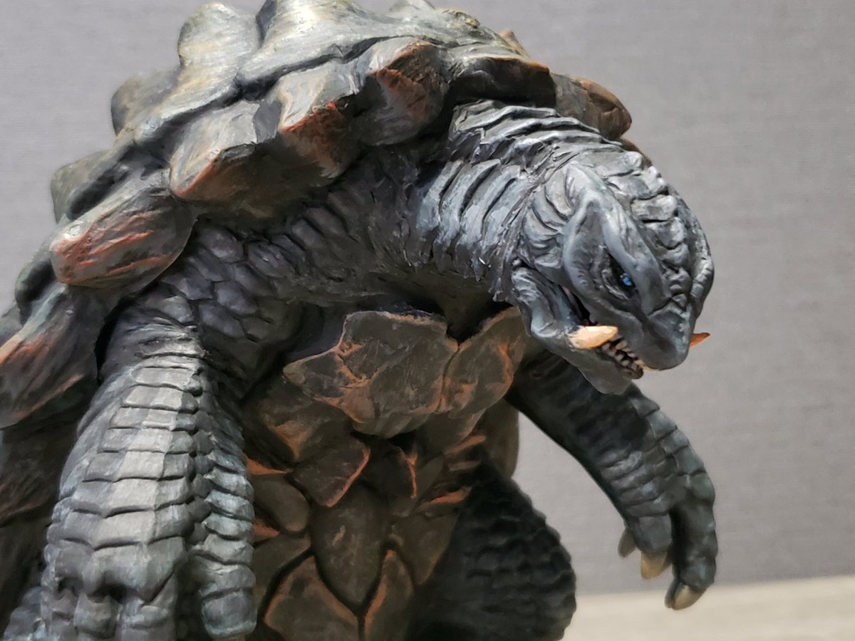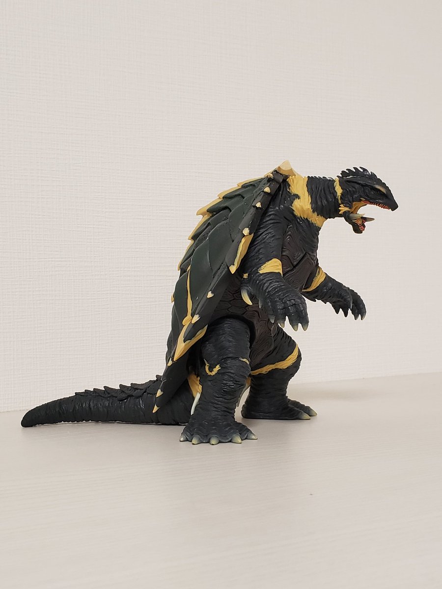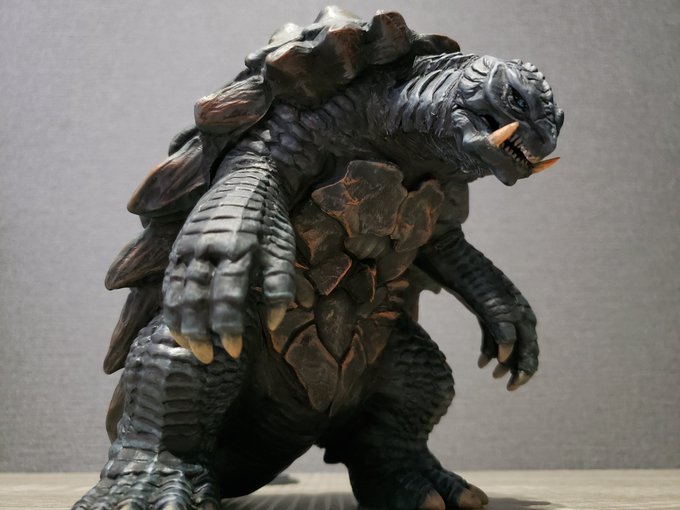 生誕50周年記念映像のGAMERAを作りました。 ムビモン ガメラリバースを切って貼ってプロポーション変更。隙間をエポパテで埋めてファレホ筆塗りで塗装しています。 ギャオスを焼き払って歩く姿をモデルにしました。