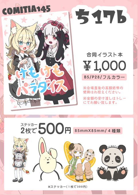 #COMITIA145 お品書きです 【9/3 東京コミティア】 スペース:ち17b(東6ホール) サークル名:けもけも☆パラダイス うるちさん(#uruti_2388) と 合同で出させて頂きます! 宜しくお願いします✨