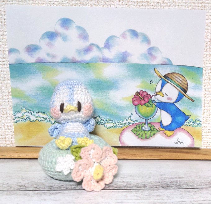 0 9 すっかり夏気分のペンギンちゃん達♬どこにでもちょこんと飾ってあげて下さい~♬ #あみぐるみ #イラスト #ペンギン 22/06/01 16:15