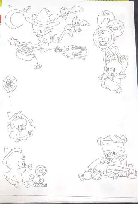 0 10 おはようございます!本日の制作過程♫これから色塗り作業です。もっと賑やかになる予定♪ #ハロウィン #イラスト #色鉛筆 22/09/14 07:46