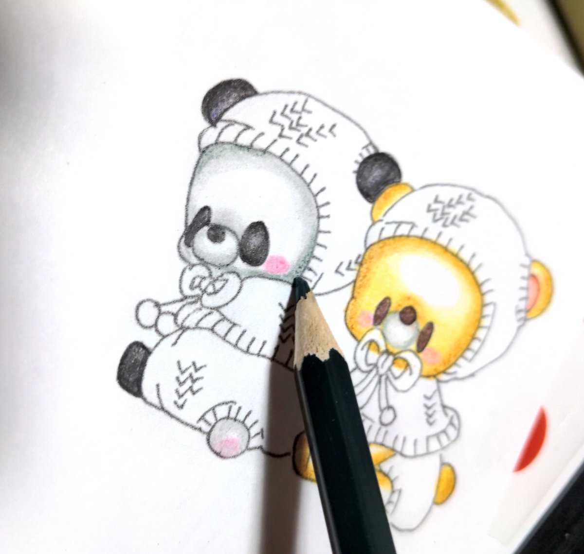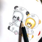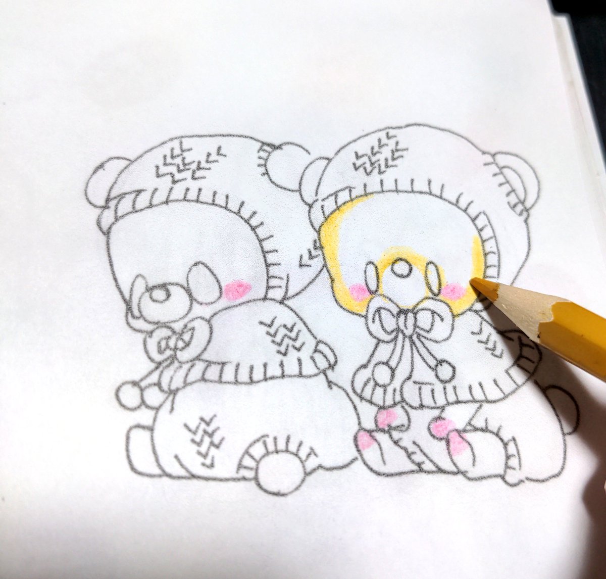 本日は制作過程を…♫暖かそうなおふたりです(*´ω`*) #イラスト #色鉛筆