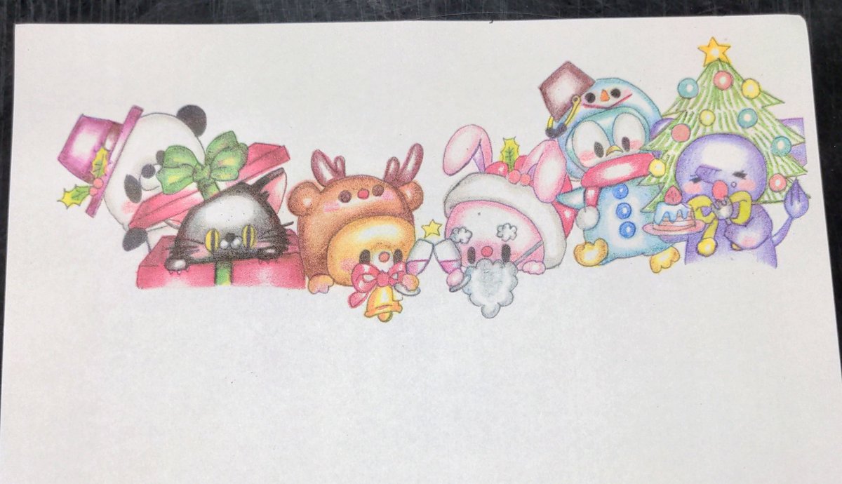 イラスト完成です。色鉛筆で塗っています。今回も賑やか♫ #イラスト #色鉛筆 #クリスマス